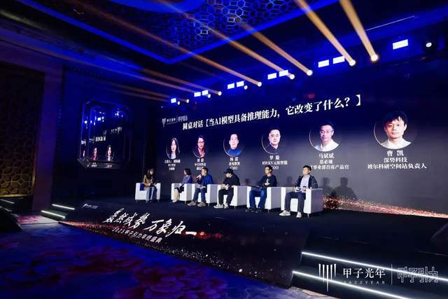 在下午的AI模型、基础设施与生态建设专场中,「甲子光年」邀请到五位身处不同位置的关键实践者——中关村科金副总裁刘倩、北电数智CMO杨震、RWKV元始智能COO罗璇、思必驰IOT事业部首席产品官马斌斌、深势科技玻尔技术研发负责人曹凯,围绕《当AI模型具备推理能力,它改变了什么?》这一主题展开深入探讨。