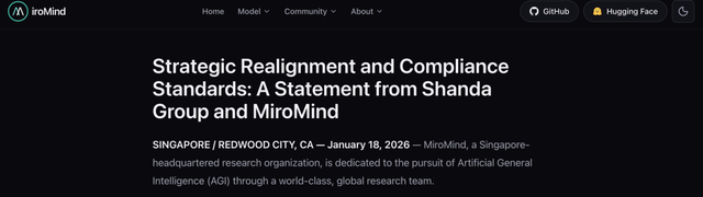 《战略调整与合规标准:盛大集团与MiroMind的联合声明》,图片来源:MiroMind