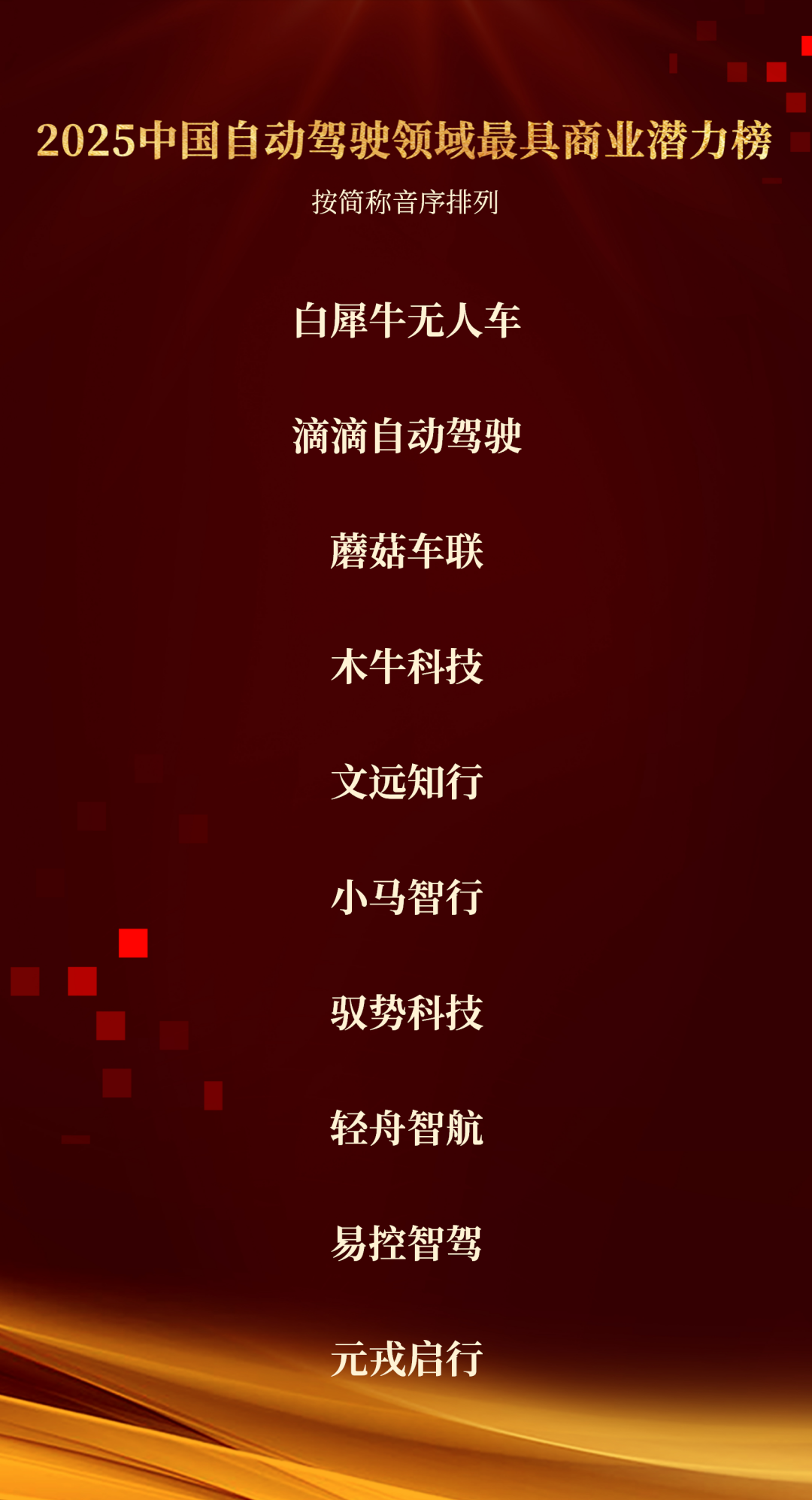 2025中国自动驾驶领域最具商业潜力榜