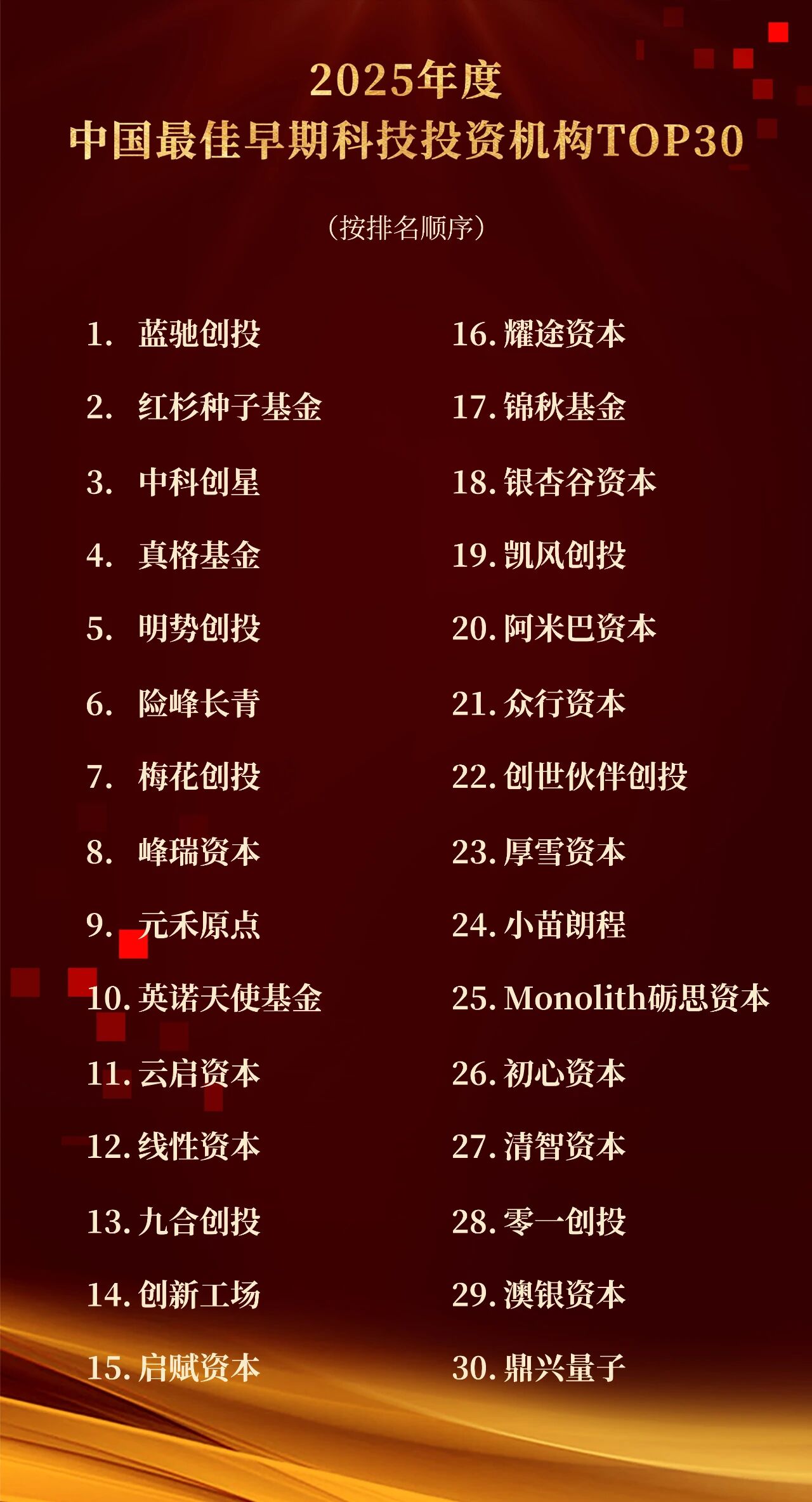 2025年度中国最佳早期科技投资机构TOP30