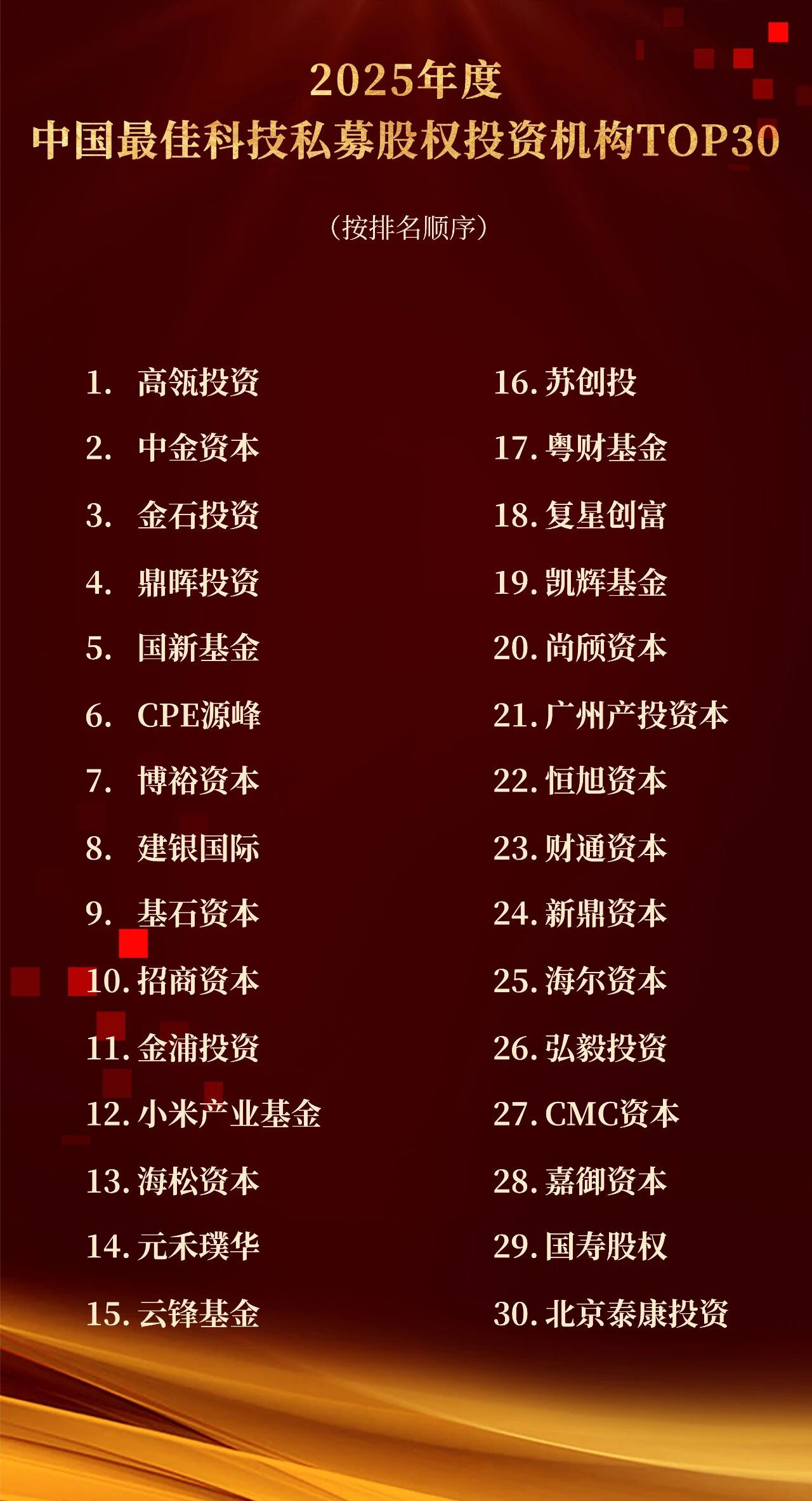 2025年度中国最佳科技私募股权投资机构TOP30