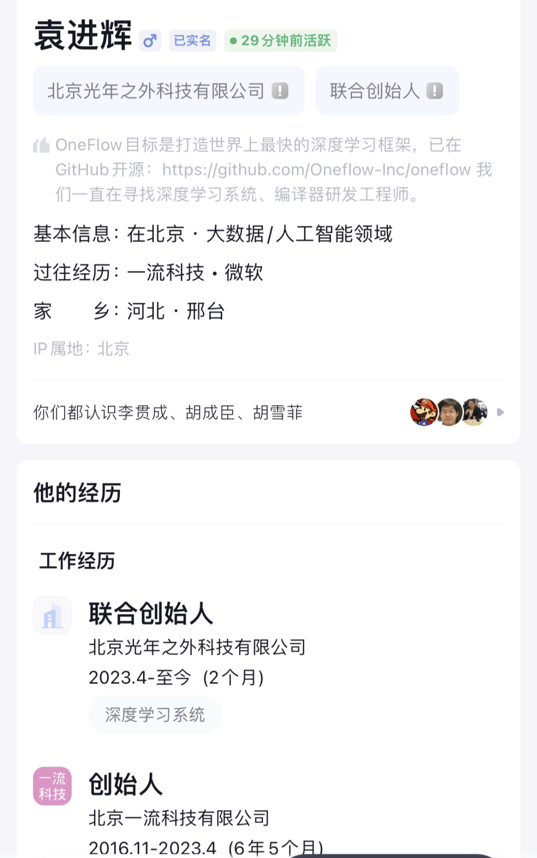 3月22日,王慧文在“即刻”发文称,光年之外启动A轮融资并正在招纳产品经理。他透露:“目前,光年之外已经确认三个联合创始人,一位是infra背景的联创,一个是算法背景的联创。”
