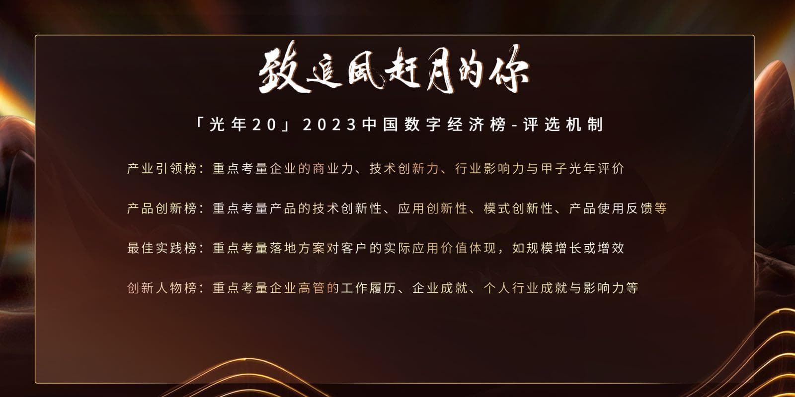 「光年20」榜单旨在表彰2023年度中国数字经济领域内的领头企业、创新性产品、优秀实践案例与行业变革者。榜单评选机制说明如下: