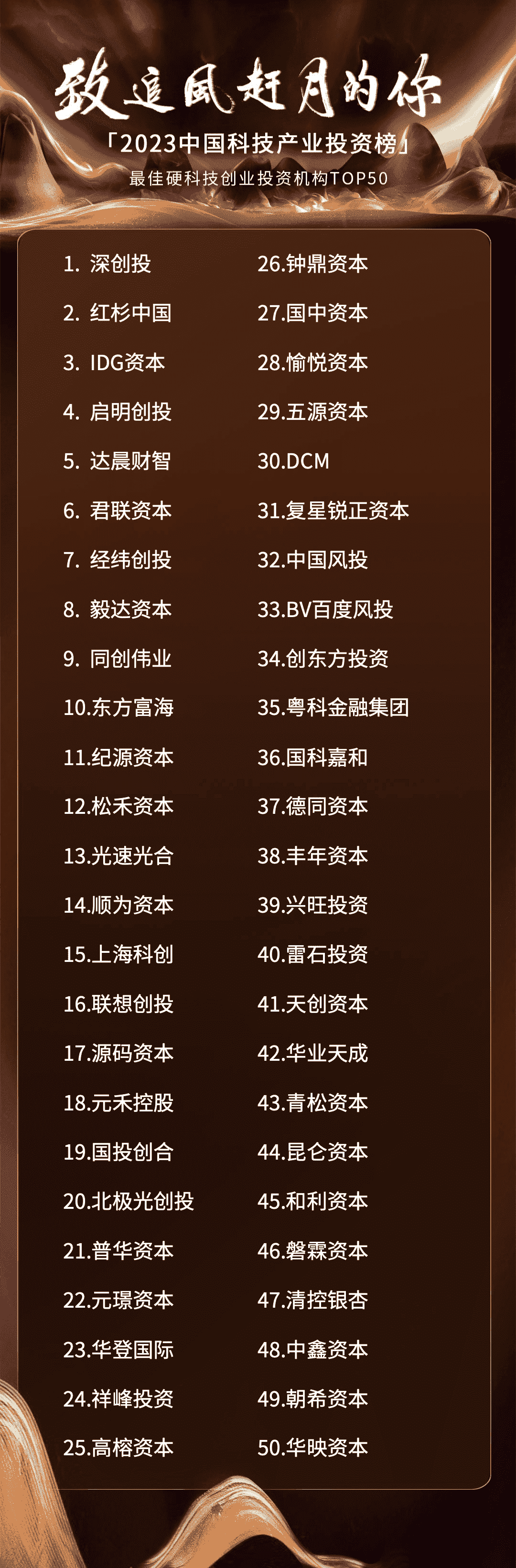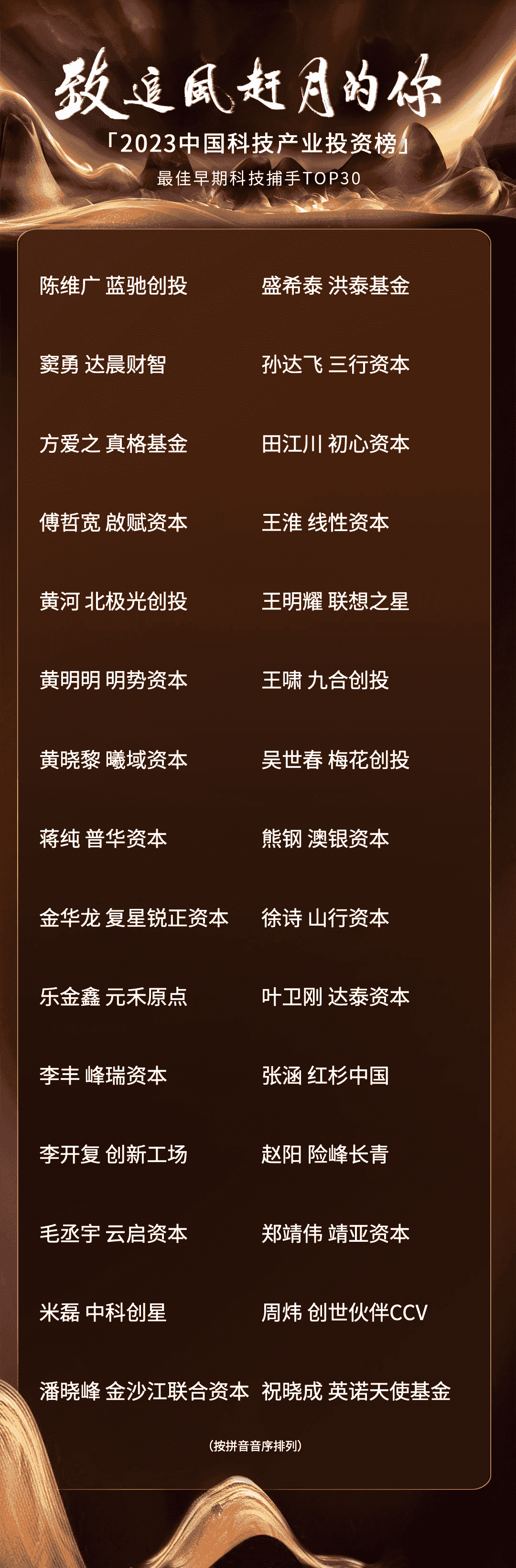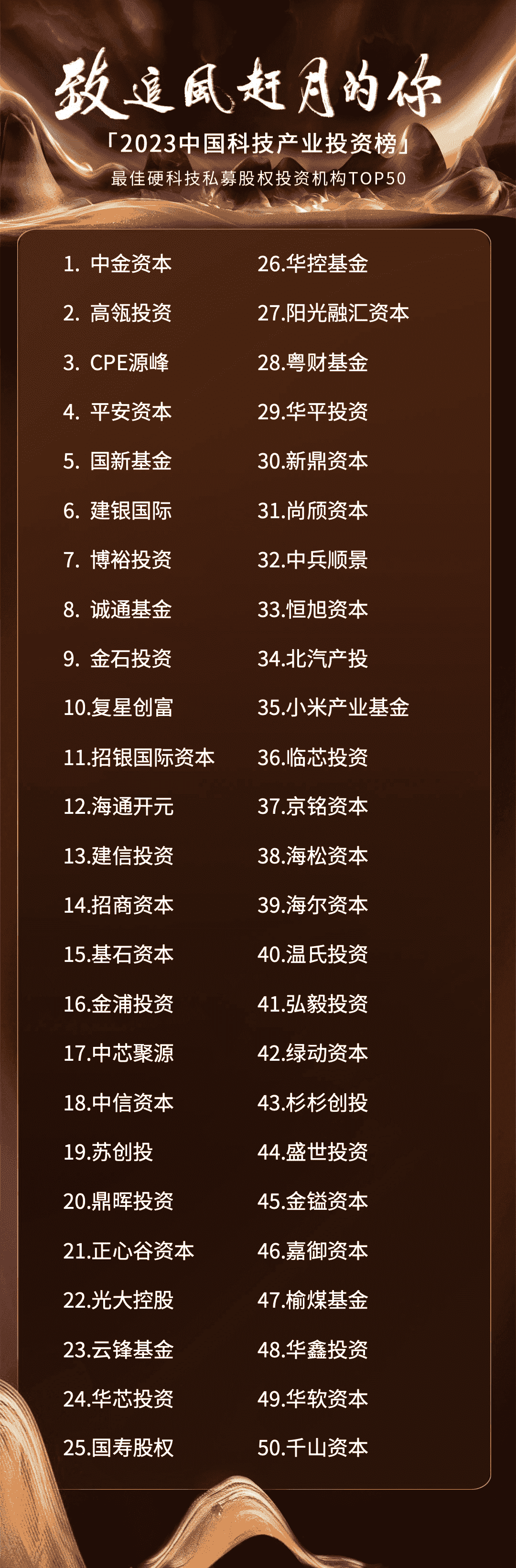 「2023中国科技产业投资榜」聚焦中国科技产业领域的价值投资者,旨在表彰2023年度投资业绩显著、成长力强劲、对中国科技产业发展具有深刻影响力的投资机构和投资人。