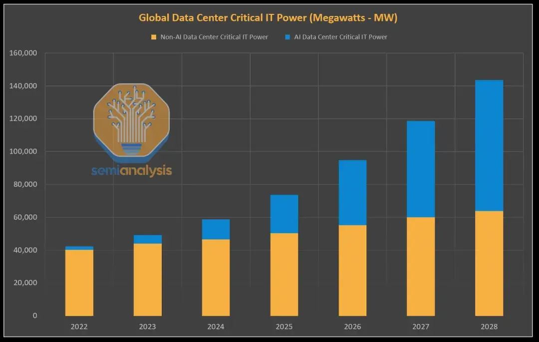 全球数据中心关键IT电力需求(单位:MW),图片来源:SemiAnalysis
