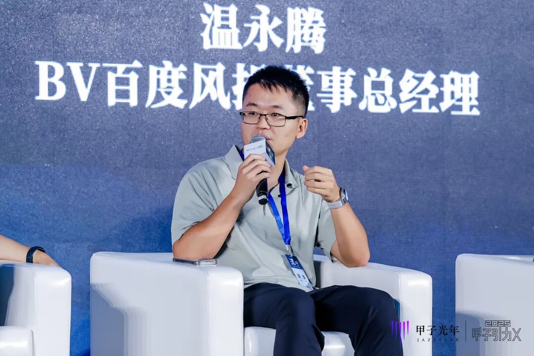 温永腾:我是BV百度风投董事总经理,BV百度风投是2017年成立的专注于投资AI的风险投资机构。2017年开始投判别式AI相关项目,2021年转向生成式AI,现在有两个大的投资领域:数字世界AI和物理世界AI。比如在多模态方面,我们投了HeyGen,目前对Agent感兴趣,在具身智能领域,投过智元、星海图等优秀的项目。我们机构还有一个特点,就是会在海外做一些投资。