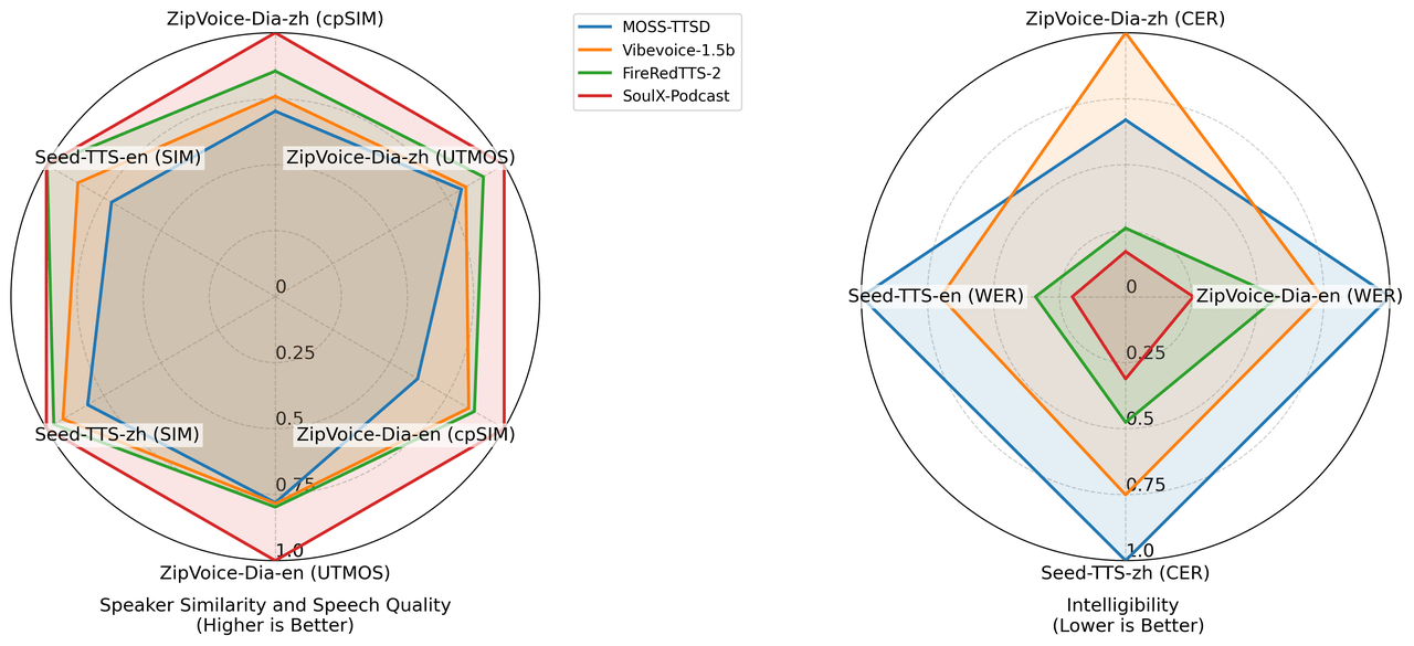 而SoulX-Podcast正是希望解决这些痛点:不仅支持多轮、多角色的长对话生成,同时兼顾方言覆盖和副语言表达能力,使播客语音更贴近真实交流场景、富有表现力与生动感,从而提升听众的沉浸体验和内容传播力。