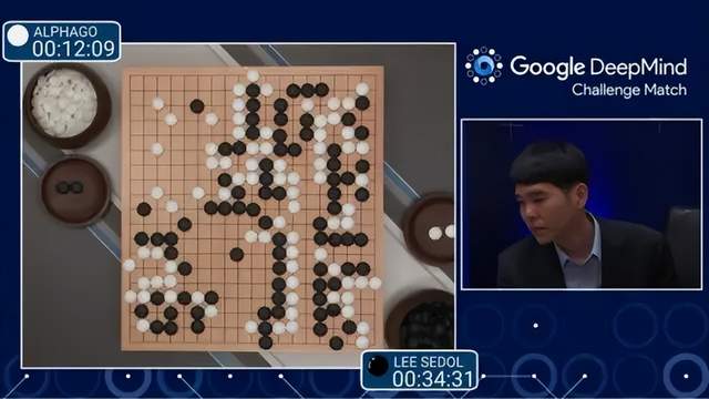 AlphaGo VS 李世石,图片来源:谷歌直播截图