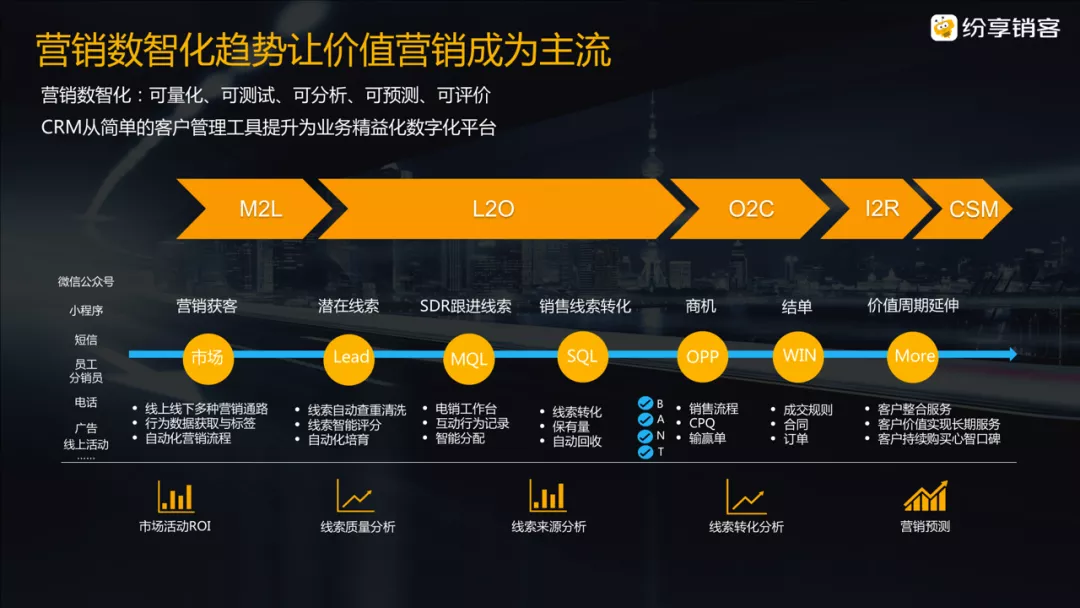 罗旭的观点是,目前SCRM的挑战在于,一是侧重to C领域,依托于微信等大平台的流量,注重的是流量的获取、运营和转化,对流量平台和运营服务的依赖性很强。二是SCRM主要聚焦在市场获客这个环节,是关注M2L(市场营销管理)的运营,而非全流程管理。