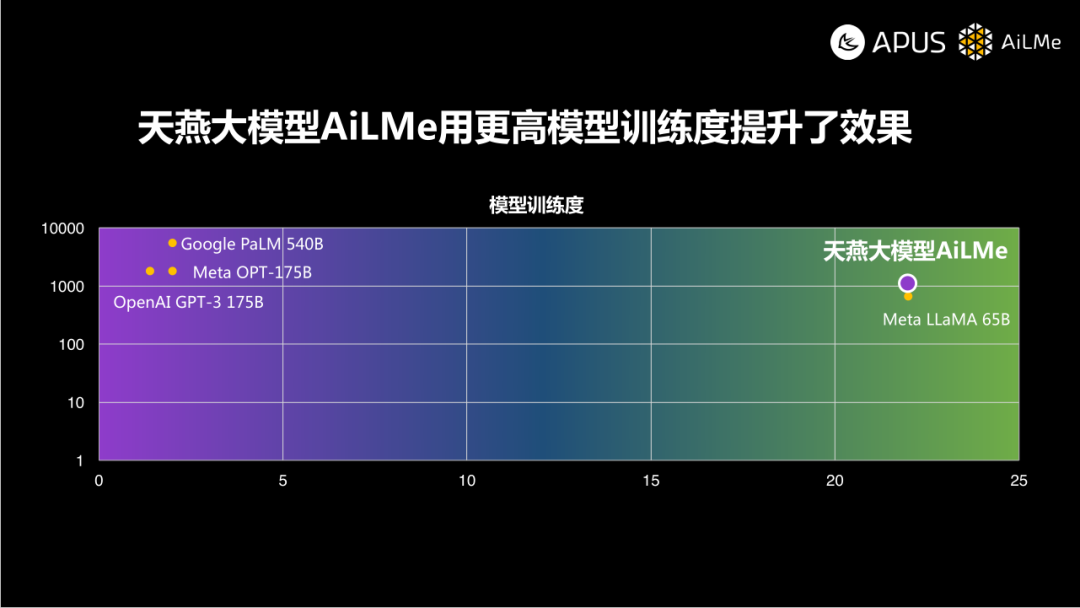 值得注意的是,天燕大模型AiLMe的参数为1000亿,训练的充分程度已经和Meta的LLaMA相近,训练数据量约为参数规模的22倍。在这些数据中,有相当部分为APUS此前的用户数据沉淀。